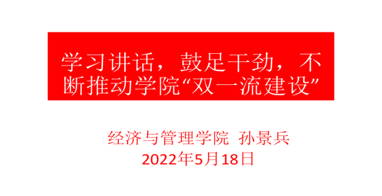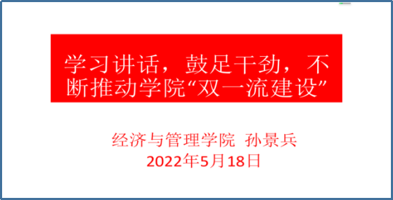 2022年5月18日下午,经济与管理学院教工第五党支部线上召开了主题为“学习讲话,鼓足干劲,不断推动学院‘双一流建设’”的主题党课活动,党课主讲人为经济与管理学院孙景兵院长,金融与贸易系教师共13人参加了此次党课活动。