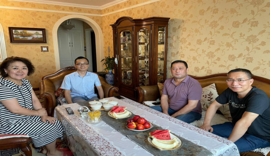 2022年7月1日下午,学院副院长、工会主席外力·依米提,工会副主席朱新杰,学院教工第二党支部书记沙米拉·色依提,学院教工第一党支部宣传委员戚振宇等一行,带着关心、关爱和关切之情,慰问了今年退休阿依夏木·玉努斯副教授、热依拉·买买提副教授,并向她们送上慰问品。走访慰问中,学院党委四名代表与她们亲切交谈,仔细询问老同志、老教师退休后的生活和身体状况以及面临的困难,对两位教师几十年来对学院建设发展作出的重要贡献表示感谢,祝愿她们身体健康,希望今后能继续关心学院的发展,并多提宝贵意见和建议。