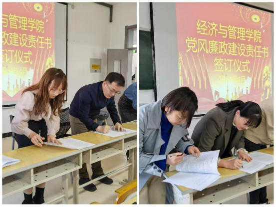签字仪式上,学院党委书记马伟分别与领导班子成员、教工党支部书记、学生党支部书记签订了党风廉政建设责任书。通过签订责任书,形成了以上率下、层层压实责任的党风廉政建设体系,进一步完善了责任主体明确、责任内容细化“齐抓共管”的工作格局,增强了全体干部教师廉洁自律意识,强化筑牢拒腐防变的思想道德防线。