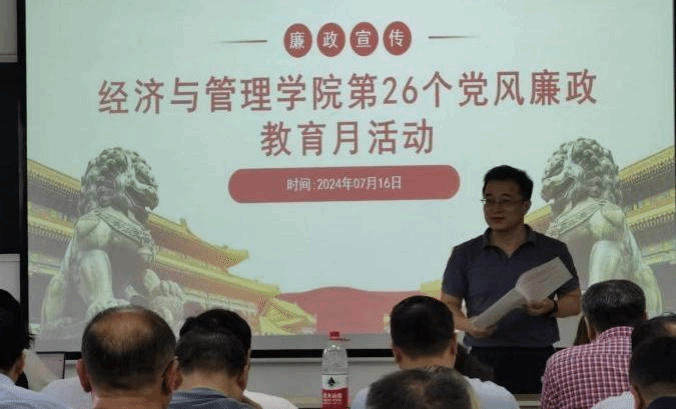 为深入学习贯彻习近平总书记关于全面加强党的纪律建设的重要论述,推动党纪学习走深走实,持续发力、纵深推进全面从严治党、党风廉政建设和反腐败斗争,根据《新疆大学第二十六个党风廉政教育月活动安排意见》,我院于2024年7月16日下午在学院218教室召开了第二十六个党风廉政教育学习大会。
