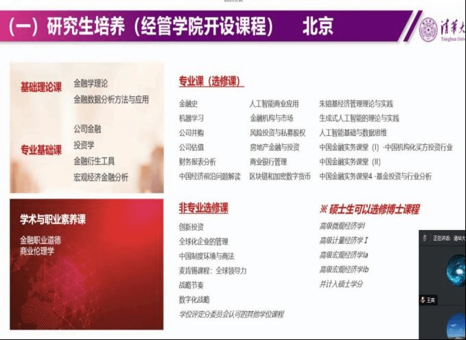 会议第二阶段,清华大学经济管理学院金融系刘淳副教授围绕研究生培养、师资队伍、教学科研、服务贡献、支撑条件、发展规划等六个方面详细介绍了本校金融专硕建设的经验。