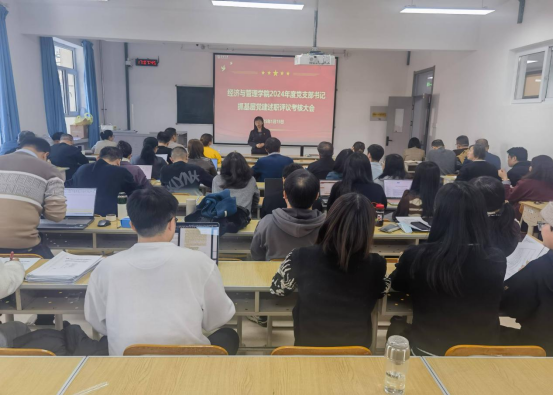 为深入学习贯彻习近平新时代中国特色社会主义思想和党的二十大、二十届三中全会精神,进一步深化对全国教育大会精神的理解,推进“五个好”标准化规范化党支部创建,在推动高质量发展、喜迎百年校庆、联系服务群众、促进毕业生就业等重大任务中总结基层党建工作成效。根据中共新疆大学委员会组织部要求,我院于2025年1月15日下午,在红湖校区11号教学楼218教室开展经济与管理学院2024年度党支部书记抓基层党建述职评议考核大会。学院全体领导班子成员、党支部书记、各系主任、各科室负责人及党员师生代表约60人参与本次大会,会议由学院党委副书记、院长吕雁琴主持。