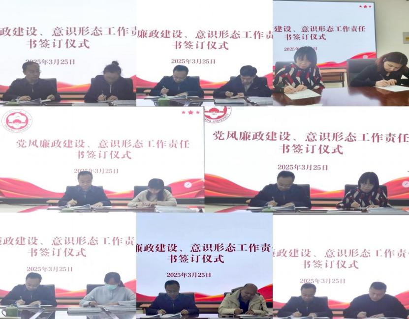 为进一步贯彻落实党风廉政建设责任制要求,深入学习贯彻习近平总书记在二十届中央纪委四次全会上发表的重要讲话精神,贯彻落实《新疆大学2025年党风廉政建设工作要点》精神,不断提高学院党风廉政建设工作水平。经学院党委充分酝酿,我院于2025年3月25日下午,举行了2025年党风廉政建设责任书签字仪式。学院党委班子成员、中心组全体成员、教师党支部书记、学生党支部书记共计30余人参加,会议由学院党委书记朱新武同志主持。