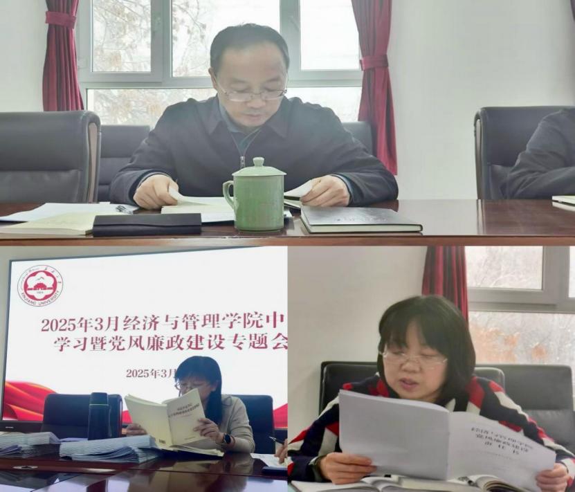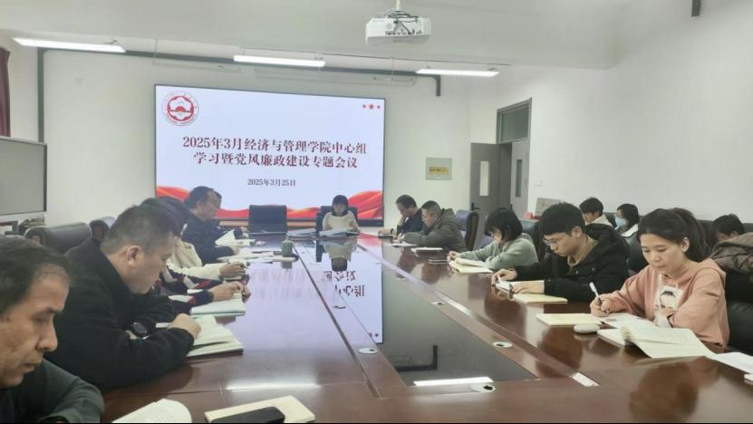 本次会议共涉及四项大议程,九项小议程。朱新武书记和吕雁琴院长依次带头领学了《习近平总书记关于党的建设的重要思想概论》第一章内容;苗健副书记领学了《经济与管理学院党风廉政建设责任书》《经济与管理学院意识形态工作责任书》内容。