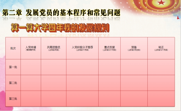 “算一算大学四年我的党员发展规划”活动中,学生通过分析表梳理提交入党申请书、积极分子推荐、发展党员确定、预备党员推选、预备党员转正的时间和任务阶段目标。辅导员王珍提醒:“党员发展不是终点,而是更高要求的起点——你的规划是否体现‘服务他人’的比重?”