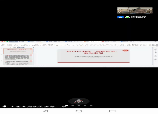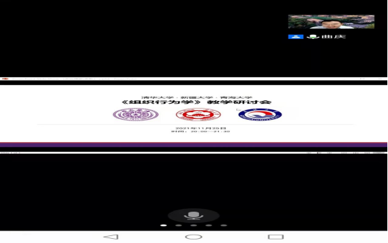 经学校发展规划处牵线搭桥,2021年11月26日20:00新疆大学经济与管理学院、清华大学经济管理学院、青海大学财经学院三校通过线上腾讯会议方式开展了《组织行为学》教学研讨会,我院工商管理系全体教师参加了交流活动。