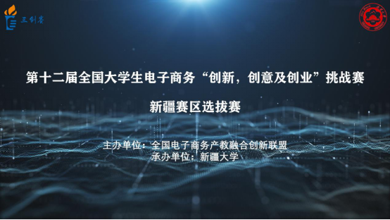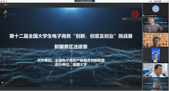 第十二届全国大学生电子商务“创新、创意及创业”挑战赛(以下简称三创赛)新疆赛区省级选拔赛于2022年6月4日至5日在乌鲁木齐举行。因疫情原因,本次比赛采取了线上进行的方式,通过腾讯会议,学生汇报答辩,评委、纪检与仲裁在线点评指导并讨论各组成绩。