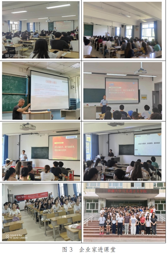 三是积极对接企业,邀请企业家进课堂。结合我院本科各专业培养要求,先后邀请了保险协会、典阅公司、申万宏源证券、国信证券等金融机构负责人来院开展理财、保险、数字人民币、证券、金融科技等方面前沿讲座和报告。邀请我院杰出校友—丝路有约负责人围绕企业经营管理主题进行专题讲授。企业家讲座内容精彩,课堂气氛活跃,学生反响好。