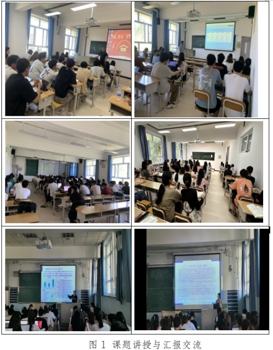 一是多主体参与课堂教学活动,探索实践教学新模式。在课堂教学方面,采取指导教师讲授与学生现场参与、学科竞赛导师与校外企业导师讲座相结合的方式。指导教师分别围绕文献检索与数据分析、数据库运用、创业计划书撰写、市场调研方案设计、管理案例分析、毕业论文撰写等不同主题进行了专题讲授,其中白晓老师带领工商专业学生深入认识毕业论文撰写的主要框架与结构,详细讲授学生写作过程中经常出现问题的关键部分,以及常用的经典管理学方法。学院层面,邀请赵玉强、周建力、苏鹏等多位学科竞赛指导教师、负责人围绕学科竞赛进行宣传讲座,鼓励学生积极参加学科竞赛。金贸系主任徐俊组织国际经济与贸易专业开展了数字贸易对抗赛,戚振宇老师组织经济学专业开展了数字经济智能对抗赛,在模拟赛事中积极动员学生参加各类学科竞赛。在校外导师层面,先后邀请申万宏源证券、丝路有约、保险学会、典阅公司、国信证券等企业负责人来院为学生做专题讲座。