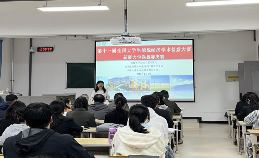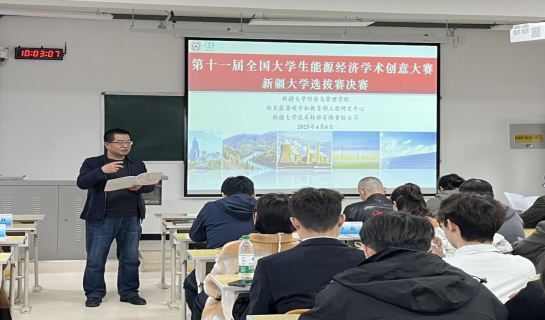 4月6日,由中国优选法统筹法与经济数学研究会主办的第十一届全国大学生能源经济学术创意大赛新疆大学选拔赛决赛于红湖校区顺利举行。此次大赛由新疆大学经济与管理学院、西北能源碳中和教育部工程研究中心承办、新疆大学技术转移公司协办。新疆大学经济与管理学院院长吕雁琴教授、新疆大学资产经营管理有限公司党委书记、董事长孙景兵教授参加开幕式,开幕式由经济与管理学院学术副院长周建力主持。