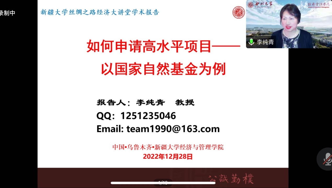 2022年12月28日下午,西北大学企业发展与管理中心主任李纯青教授应邀来经济与管理院举办名为《如何申请高水平项目——以国家自然基金为例》的讲座。讲座以腾讯会议的形式进行。学院党委副书记、院长孙景兵主持讲座。经济与管理学院、商学院的师生参加会议,参会师生123人。
