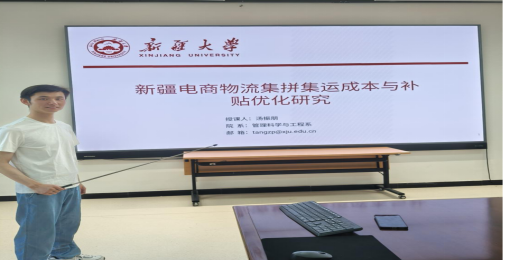 在本次研讨会上,汪文成老师针对“双碳”目标背景下自动化码头港口多设备协同调度及充电策略的优化问题进行了深入讲解。她通过运用数学建模、算法设计及数值实验等研究方法,提出了旨在提高港口运营效率与降低碳排放的方法和策略。随后,汤振朋老师就新疆地区快递时效与成本问题进行了分享,通过建立模型分析,探讨了补贴策略在优化快递集运模式中的应用,目标在于最小化单票成本并提升运营效率。