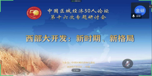 “中国区域经济50人论坛”第十六次专题研讨会于7月12日下午,通过“腾讯会议”的形式在线上举办。此次专题研讨会主题为“西部大开发:新时期、新格局”,来自全国各地300位专家学者参加了此次会议。国家发改委原副秘书长范恒山首先致辞并讲话,会议分别由国家发改委国际合作中心原主任曹文炼和首都经贸大学原副校长杨开忠主持。