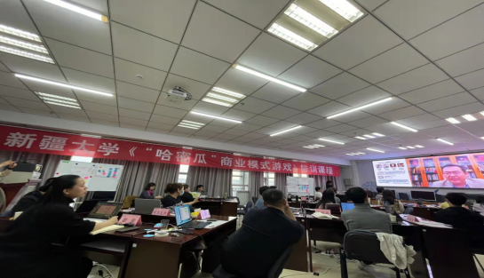 2022年3月8日上午《“哈密瓜”商业模式游戏》课程培训在新疆大学红湖校区科技楼615会议室举行。本次课程培训是经新疆大学经济与管理学院教授、新疆创新管理研究中心主任孙慧老师与魏朱商业模式理论提出者之一北京大学汇丰商学院魏炜教授沟通获得支持,并由授权开发公司北京浮木素维科技有限公司张国维老师团队一行5人来新疆开启的首场现场培训。新疆创新管理研究中心组建5个小组20位师生作为首批种子团队开启了为期一天历时10个小时的紧张激烈而充实热烈的课程学习。培训接近尾声时,魏炜介绍了魏朱商业模式提出的背景以及核心思想,并热情地与参与此次培训课程的师生进行交流,为师生们答疑解惑。