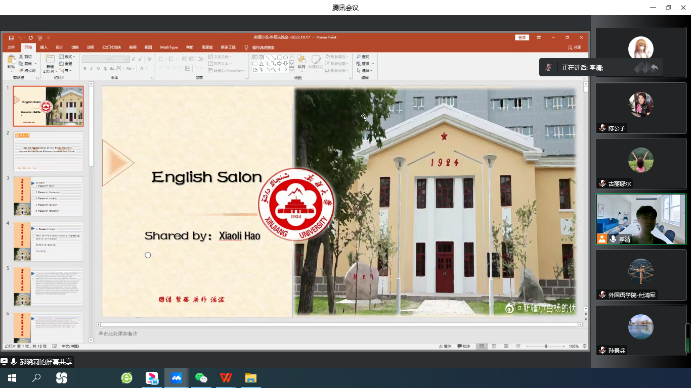 10月17日下午16:00由党委教师工作部主办、经济与管理学院承办的青年教师英语学术沙龙通过腾讯会议的形式在线上召开。本次学术沙龙由经济与管理学院李清副教授主持,古丽娜尔·玉素甫教授、郝晓莉副教授作报告。