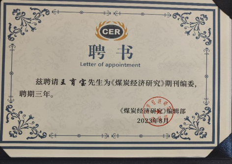 会上,《煤炭经济研究》期刊隆重向新聘期刊编委颁发了聘书。学院副院长王育宝教授被聘为《煤炭经济研究》期刊编委、朱俏俏副教授为期刊青年编委。《煤炭经济研究》(月刊)1981年创刊,中国煤炭经济研究会会刊,煤炭行业经济管理类唯一学术期刊,被北大中文核心期刊数据库、中国科技核心期刊数据库、中国人文社会科学引文数据库收录。