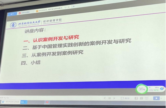 欧阳教授讲述了三个方面的内容:一是认识案例开发与研究;二是基于中国管理时间创新的案例开发与研究;三是从案例开发到案例研究。并着重强调了案例开发的难点和案例教学的难点,如何进行案例故事的选择,以及案例研究的方法和注意事项。在互动环节,欧阳老师与师生交流了如何与企业建立长期有效的联系,如何选择优秀案例以及应用到课堂教学和案例研究。