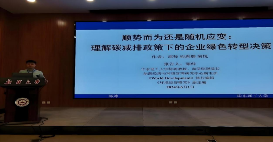 华东理工大学商学院副院长、能源经济与环境管理研究中心副主任邵帅教授探讨了碳减排政策下企业绿色转型决策的激励机制和政策效果,并从公司金融治理视角提出绿色创新和绿色并购替代关系的选择依据。