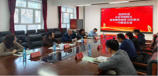 2025年1月16日下午,中亚区域经济合作学院(以下简称中亚学院)院长查里穆哈梅特•沙利耶夫、第一副院长黄京菁、人事财务及行政处处长胡啸、行政及人事管理专员李娜、行政助理苏丽娅一行五人来到新疆大学经济与管理学院进行交流座谈。会议由经济与管理学院院长吕雁琴主持,新疆大学国际交流与合作处处长朱新武、经济与管理学院副院长李清、李迎雪参会。