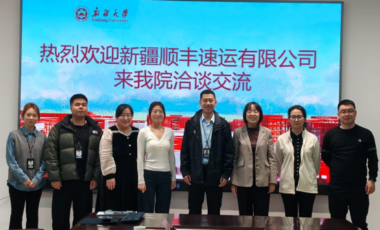 2025年2月28日,新疆顺丰速运有限公司区域总经理杨骐鸣一行5人到访新疆大学经济与管理学院,双方围绕深化校企合作、推进智慧校园建设、拓展就业岗位等议题展开深入交流。学院党委副书记苗健、学院教学副院长马晓东及就业专干辅导员参加座谈。