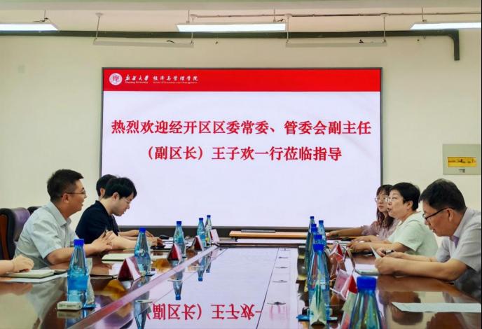 2025年8月29日上午,乌鲁木齐经济技术开发区委常委、管委会副主任(副区长)王子欢,乌鲁木齐经济技术开发区高铁枢纽综合投资(集团)有限公司(以下简称“高铁集团”)副总经理包辉、资产管理部部长张婷婷一行应邀莅临经济与管理学院开展高铁集团“亚欧商贸中心”项目智库合作座谈交流。经济与管理学院学术副院长、新疆宏观经济高质量发展研究中心副主任向洁,经济与管理学院学术副院长、新疆能源碳中和战略与决策研究中心副主任周建力,经济与管理学院教授、新疆企业财税风险管理研究中心主任徐晓莉,管理科学与工程系教授郭庆然、孙戈兵等20余名专家教授、学术骨干和硕博研究生参加,向洁副教授主持。
