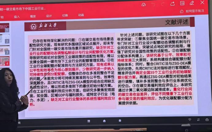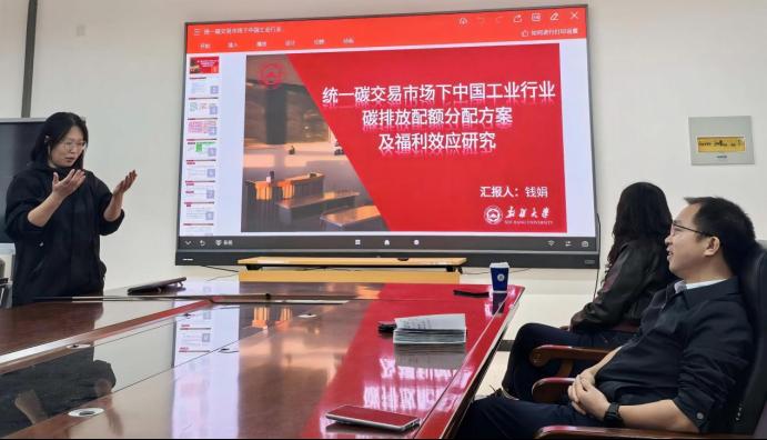 随后,钱娟老师就其项目《统一碳交易市场下中国工业行业碳排放配额方案及福利效应研究》进行了深入分享。该研究通过构建模型,探讨了统一碳交易市场下中国工业行业碳排放配额的分配方案及其福利效应,目标在于促进我国工业绿色低碳转型。
