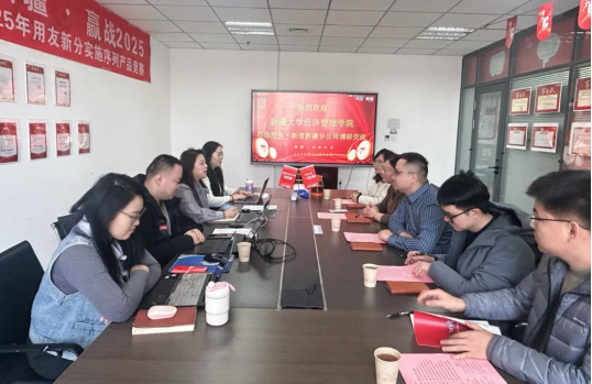 为深入了解人工智能技术在企业运营管理中的前沿应用,探索校企合作新路径,推动经管学院学科建设与人才培养模式创新,2025年11月20日上午,我院教学副院长马晓东、经济系系主任华淑名、金融与贸易系系主任徐俊、工商管理系系主任刘晶、管理科学与工程系系主任陈任飞一行五人赴用友新疆分公司专题调研“ai在行业的应用进展”。用友网络新疆分公司高级顾问江雪豹、新道科技新疆分公司总经理张丽、校企合作总监芦星、市场经理赵丹、教学服务经理焦雪红等参加调研。