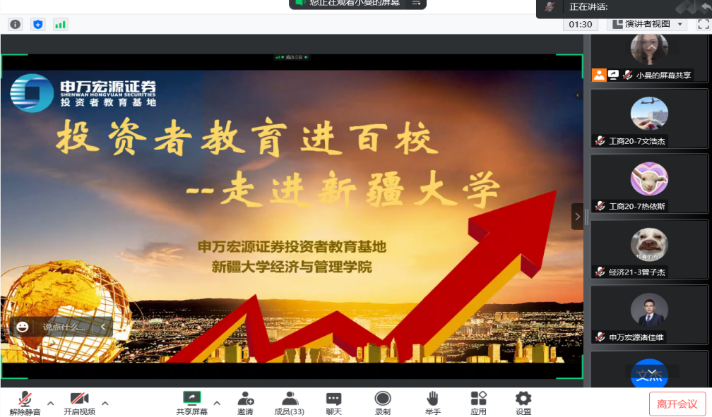 为使同学们更多地了解基金市场的改革发展,提高学习专业知识的兴趣,拓宽专业视野,培养金融思维。2022年11月16日20:00,经济与管理学院邀请申万宏源证券上海莘松路营业部副总经理、申万宏源证券上海分公司财富团队运营组长诸佳维老师围绕基金市场的改革发展主题作了讲座。200余名本科生、研究生参加了本次讲座。