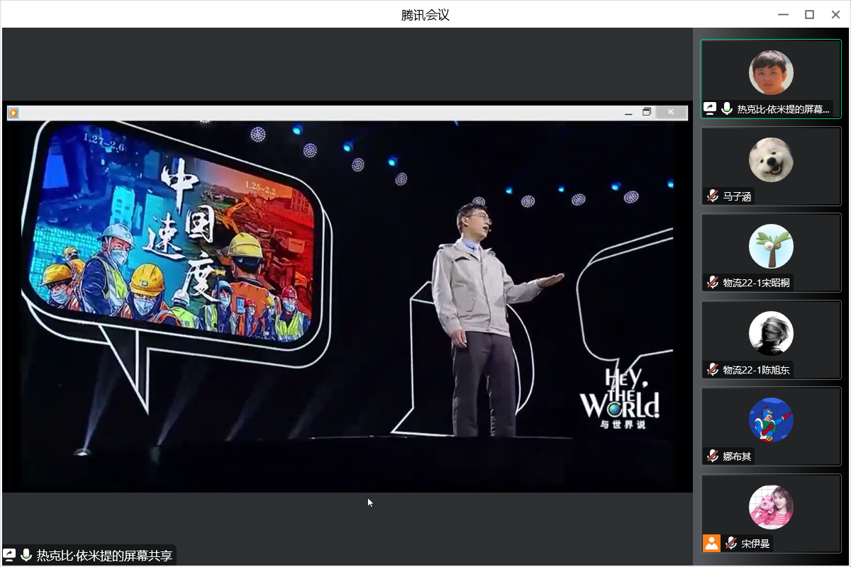 物流管理2022-1班林恩泰同学讲到:“从本次班会中,我们可以看到团结协作打造建成的火神山医院是只有中国才能创造的奇迹,中国速度便是我们的榜样,工人们团结协作、夜以继日工作的热情是我们学习的榜样,榜样就存在于我们的身边,他们只是在自己的岗位上默默发光发热,将自己的职责做到极致,我们要向榜样们学习。在疫情这个背景下,不为祖国添负担,积极配合防疫工作,向榜样们汲取力量,为抗击疫情这场战役奉献自己的力量。”