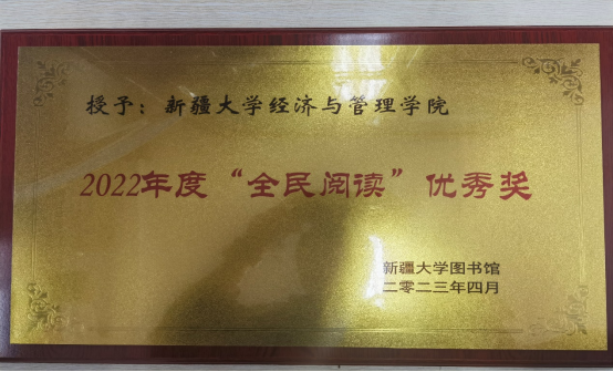 阅读是人类获取知识、启智增慧、培养道德的重要途径,可以让人得到思想启发,树立崇高理想,涵养浩然之气。一年前,习近平总书记向首届全民阅读大会致贺信,鼓励青少年养成阅读习惯,快乐阅读,健康成长,希望全社会都参与到阅读中来,形成爱读书、读好书、善读书的浓厚氛围。在2023年4月23日第28个“世界读书日”来临之际,为推动我校书香校园建设,贯彻落实全国青少年学生读书行动启动暨国家智慧教育读书平台开通仪式上的讲话精神。在表彰先进,树立典型中激励引导我校学生走出宿舍、走下网络、走进图书馆,营造“多读书、善读书、读好书”的良好阅读氛围。新疆大学图书馆于世界读书日当天向我院授予2022年度“全民阅读”优秀奖,并对我院3名本科生授予新疆大学2022年度“学习达人”荣誉称号(图书馆自习时间长),以此来表彰我院在发扬阅读习惯,促进优良学风上所做出的努力。
