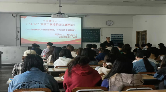为深入贯彻落实习近平总书记关于知识产权工作的一系列重要论述,在第23个世界知识产权日来临之际,围绕加强知识产权法治保障,大力倡导创新文化,营造良好的励学和创新环境,教育引导同学们遵守学术规范,端正学术道德,维护学术权威,一丝不苟求学问,格物致知看问题,把科学研究融入国家产业发展和人民幸福的中国特色社会主义道路建设中,努力为科技强国贡献自己的力量。根据自治区专利信息中心、新疆大学tisc、新疆大学党委学生工作部要求,新疆大学经济与管理学院于2023年4月26日15:30—16:30,16:30—17:30分批次分时段开展“4.26知识产权进校园”暨加强知识产权法治保障,有力支持全面创新主题班会。为保障班会质量,各班提前预习学习资料,认真准备主持讲稿,确保本次班会的务实开展。
