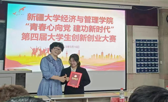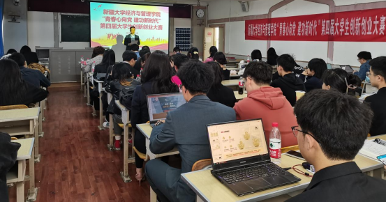 热血五月,铸就青春赞歌;青年奋斗,贵在敢想敢为。创新创业是国家发展、社会进步的永恒动力,是时代赋予青年学子的责任和希望,大学生创新创业活动是贯彻落实科教兴国战略和人才强国战略的具体行动,也是高校学生自我展现、勇于探索、敢于实践的平台。为深入落实“立德树人”根本任务,把创新创业教育融入人才培养全过程,提升我院学生创新创业意识和创新创业实践能力,带动我院学生积极响应问题导向号召,营造崇尚科学、敢于创新的良好学习氛围,同时为第九届中国国际“互联网 ”大学生创新创业大赛学院选拔赛,根据学工办安排,新疆大学经济与管理学院于2023年5月16日下午15:30于11号楼221教室开展“青春心向党 建功新时代”第四届大学生创新创业大赛,我院提前谋划、精心安排、认真落实,全力做好各项准备工作。
