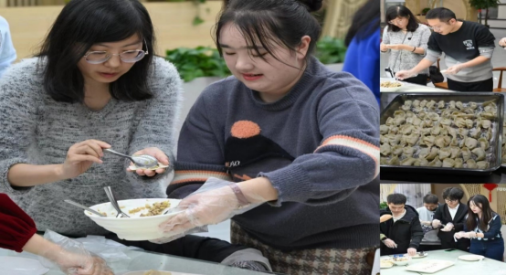 活动伊始,老师们进行了简短的2023年总结,给同学们送去了2024年的美好祝愿。接下来,师生共同包饺子、拉家常,于小小的饺子中,敞开大大的心扉。来自天南海北的同学和老师包的饺子虽各式各样,但每一个都包进了师友情深桃李芬芳。同学们边包饺子边嬉闹,师生们边包饺子话家常,笑声此起彼伏,“三二一”餐厅洋溢着温暖欢快的节日气氛。
