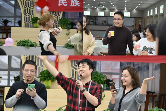 不一会儿热腾腾的饺子呈现在大家面前,同学们迫不及待地品尝着这份来自于自己努力的果实,并年味十足的讲起了自己的往事,分享着自己进入新疆大学的点点滴滴。大家品尝美味饺子的同时,文艺活动有序进行。从欢歌笑舞,到谜语游戏,每一个节目都融铸了两个班学生的用心准备与积极参与,一片欢声笑语在“三二一”餐厅中涤荡开来。师生们沉浸在歌曲与游戏的欢乐中,品味于饺子中多元与团结的香甜里。师生师友倾诉大学心声,校园往事的碎碎念念,正像是以后的岁岁年年。