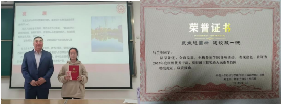 获得表彰的“班级优秀党员”的中共预备党员工商 21-1 班金语西同学说道:“作为一名学生党员,我严格规范自己的言行,在学习上秉持精益求精的态度,未来我要把自己发展成为一个对社会有用的具有某类专业性的人才,加入到岗位上各司其职、努力钻研,进而为推动经济发展与社会建设作出贡献!”