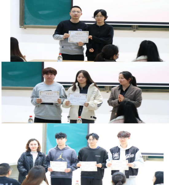 演讲完毕后,主持人马伟杰、王春霞同学先是感谢了参与演讲的同学们,随后协助工作人员一起整理比赛评分。同时,由评委老师进行总体评价,刘鑫老师先是对选手们的整体表现给予肯定,随后针对选手们的表现详细点评了个别同学们的优点与不足。随后开丽比老师进行总体评价,能够在这么短的时间内有这么多的选手准备并参赛,可以看得出我们学院同学们的积极性。最后,由开丽比老师宣读比赛结果公布:一等奖,王若荷;二等奖,叶尔加纳提,宋伊曼;三等奖,汪磊,艾克拜尔,李浩宇。由评委老师公布并上台为获奖的选手们颁奖与合影留念。最后,由两位主持人致结束语,“岁月峥嵘需拼搏,年华潇洒莫蹉跎。”把愿望写在今天,把理想刻在今天,将此份感恩铭记于心,未来创造无限可能回馈社会。