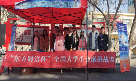 股票流通市场上的价格是反映经济动向的“晴雨表”,为宣传第十届“东方财富杯”全国大学生金融挑战赛,鼓励新大学子通过新途径学习金融理财知识,科普金融工具,读懂金融趋势,适应新形势下经济社会发展对人才的需求,同时增强在校学生的金融反诈意识。根据新疆大学经济与管理学院分团委学工办统筹部署,我院分团委投资与理财协会社团于2024年3月27日15:30,在红湖校区主干道(俞秀松路)设置第十届“东方财富杯”全国大学生金融挑战赛宣传点位。通过发放东方财富提供的宣传手册,吸引同学们前来了解比赛的赛程和形式,现场指导同学们注册报名,讲解竞赛规则与奖励机制,邀请同学们加入赛事qq群,通过多种方式扩大赛事的影响力,让更多同学主动加入到本次竞赛中,了解股市背后的民生全局,学会用经济理论思考问题。