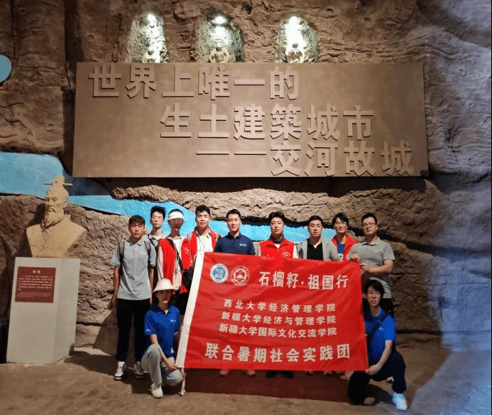 在全国民族团结进步表彰大会上,习近平总书记鲜明提出“四个共同”的中华民族历史观,“我们辽阔的疆域是各民族共同开拓的,我们悠久的历史是各民族共同书写的,我们灿烂的文化是各民族共同创造的,我们伟大的精神是各民族共同培育的”。对此,为全面强化对只有中华民族高度团结才能实现民族地区经济长足发展这一共识的认识,2024年7月22日,新疆大学经济与管理学院、西北大学经济管理学院和新疆大学国际交流文化学院组成的联合暑期社会实践调研团将本次实践调研活动的第三站定于交河故城。交河故城肇始于汉代,同期逐步成为西域都护府驻地,从而位列我国西域地区政治军事要地之首。此后历经历史跃迁、沧桑嬗变,在唐代再度成为西域都护府驻地,直至有清一代,政治、金融、商贸、文化等与内地融通更为频密。宏观层次上,可谓其隶属中国的主权性与归属中华的认同感纵向递增;而作为往昔的行政重镇、今朝的历史遗迹,其以存世的每一垣、每一壁辉映着青史的一枝一叶,以当今的民安居、众乐业述说着中华的磅礴一系。