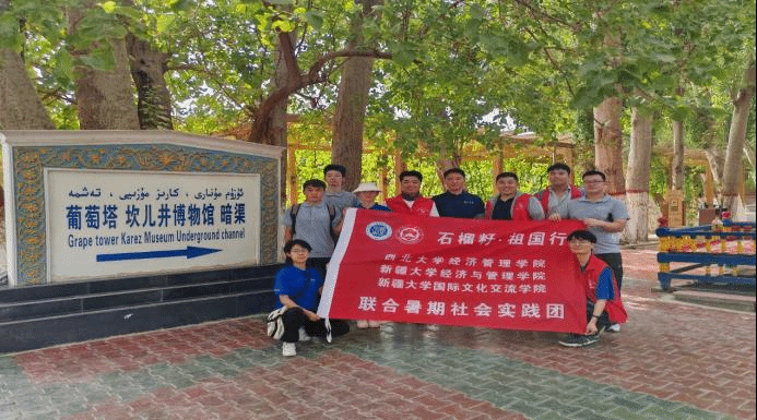 2024年7月23日,新疆大学经济与管理学院、西北大学经济管理学院和新疆大学国际交流文化学院组成的联合暑期社会实践调研团深入吐鲁番,探索了古老而充满智慧的坎儿井。这不仅是一次对古代水利工程的实地学习,更是一堂生动的民族融合课。坎儿井,这一伟大的发明,是古丝绸之路上各民族智慧的结晶,其独特的工作原理展现了人与自然和谐共存的智慧。这次参观使得每个联合暑期社会实践成员对坎儿井有了更全面的了解,其工作原理、保护现状、发展变迁以及对经济文化生活的影响,每一个方面都给我们留下了深刻的印象。
