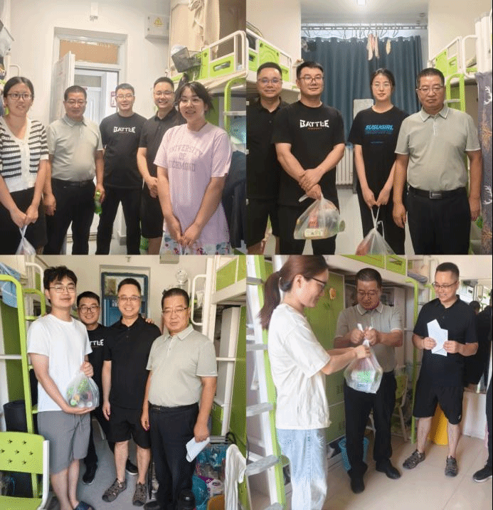 8月2日14:00,学院领导和辅导员提早来到指定地点集合,推动着承载浓情的“大礼包”前往学生宿舍。走访过程中,院领导与留校学生们进行了深入而真诚的交流。不仅详细询问了学生们的日常生活和学习进展,还特别关注了学生们在学习和生活中遇到的难题和需求。在交流中,院领导们着重强调了人身安全、意识形态安全、心理安全的重要性。提醒学生们在假期为自己学业充电的同时,也不要忘记时刻关注学校和学院开展的各项论坛讲座,积极参与学校学院活动的志愿服务工作,倡导学生们合理安排时间,培养良好的学习和生活习惯,提升自己的综合素质和健全人格,在留校中悦纳自我,而非埋头苦学。针对留校学生中的主体暨准毕业生(2021级本科生和2022级硕士研究生),院领导还详细询问了学生未来的发展规划,现场为计划工作的学生推荐就业单位,给与就业建议。为计划升造的学生推荐就读院校导师,给与发展指导。完整准确贯彻先就业再择业的正确求职观,鼓励学生顺应国家号召和“乡村振兴”发展需要,积极投身到基层一线、田间地头、人民所需的岗位上去,用青春的汗水和担当铸牢中华民族共同体意识,在实践锻造中不断增强做中国人的志气、骨气、底气,让革命薪火代代相传。