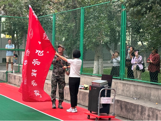 在动员讲话过后,我院一营政治教导员苗健副书记宣布军训安排以及军训纪律要求,并向军训教官代表进行授旗。苗书记详细说明了军训的时间、内容和注意事项,强调了军训纪律的严肃性,要求同学们严格遵守军训纪律,听从教官的指挥,确保军训的安全和顺利进行。