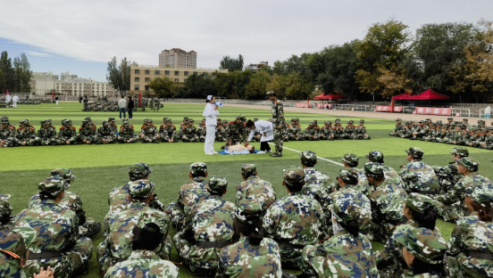2024年8月28日军训正式开始。军训期间,同学们身着统一的迷彩服,在教官的严格指导下,进行了队列训练、体能训练、战术演练等多个科目的学习。烈日下,他们站军姿、走正步,汗水浸湿了衣衫,却无一人退缩。风雨中,他们依然坚持训练,用实际行动诠释了“风雨无阻”的军训精神。军训期间,同学们参加了2024年新疆大学“跑道上的校史思政大课”迎新跑活动;在北京儿童医院新疆医院(自治区儿童医院)医护人员的指导下认真学习了应急救护培训,提升了同学们自救互救能力。