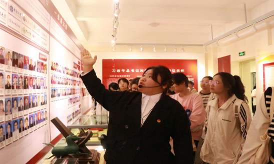 上午10:50,新生各班班主任及班助有序组织本班学生前往校史馆,沿着俞秀松路前行,一座苏式黄色二层楼——解放楼映入眼帘。同学们跟随讲解员的步伐,依此参观了流金岁月、红色传承等展厅,校史馆内还摆放了新大历史文物供同学们参观。在老照片展馆里,同学们通过一张张映入眼帘的照片感悟新疆大学的百年历史,它们仿佛叙说着在新大火热青春的激扬人生和鉴证学校发展的筚路蓝缕,同学们深刻感悟到新大在不同历史时期取得各项成就的来之不易,并为那些在不同时期为新大屯垦戍边、赓续奋进的老师们表示由衷的敬佩。当然,在这背后更离不开中国共产党对新疆教育事业的重视与支持。那些在不同历史时期涌现出的一批又一批胸怀祖国、对党忠诚、立德树人、拼搏奉献的先辈楷模,如俞秀松、林基路、杜重远……他们以实际行动投入到为新疆人民带来马克思主义的思想觉醒中,为时代新人培养提供了强大的精神动力,这些无一不激励着我院新生在新大这片沃土上不忘初心、砥砺前行。有限的是目之所及的陈列柜、陈列墙,无穷的是新大百年的精神风貌。同学们在参观中与讲解员进行了互动讨论,反响热烈。