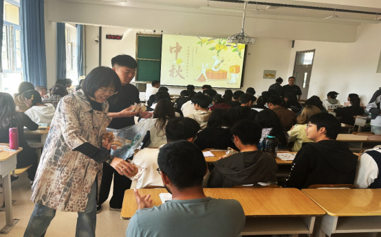 中秋节作为源远流长的中华民族传统节日,寄托着丰富的华夏情感。丹桂飘香,正值中秋佳节即将到来之际,恰如古人诗中所云:“每逢佳节倍思亲。”于2024级新生而言,首次离家求学更添思亲之意。为铸牢中华民族共同体意识,弘扬中华优秀传统文化,贯彻落实我院以人为本的教育理念,营造和谐融洽校园文化氛围,加强师生间沟通,建立师生信任,促进良性师生关系发展,疏解学子思乡情感,增进学子归属感、认同感。根据学院党委统筹部署,学生工作办公室提前谋划、精心安排、认真落实,全力做好各项准备工作,并于2024年9月15日开展“情暖中秋”走访慰问2024级新生活动。学院党委书记马伟老师带领学院领导班子成员走入本硕博新生入学教育课堂,为400余名新同学们带去中秋佳节的祝福和百年校庆月饼。