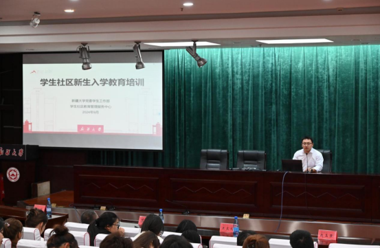 为引导我院学生充分了解学生社区“一站式”改革的具体内容,以赋能建设社区精神文明阵地,进而提升学生宿舍生活满意度,帮助学生自觉融入社区管理服务工作,促进“一站式”架构下社区与学生群体的有效衔接,保障我院平安校园和宿舍文化建设的持续推进,提高宿舍文化育人、服务育人、思想育人、管理育人和实践育人功能,进而确保学生社区安全稳定,强化学生安全防范意识,提高学生文明素养和自我管理能力,引导广大学生共同营造安全、卫生、文明、和谐的宿舍环境,我院特邀新疆大学红湖校区学生社区教育管理服务中心一同开展2024级新生社区生活文明安全教育活动,为保障本次社区生活文明安全教育活动顺利开展,我院提前谋划、精心安排、认真落实,全力做好各项准备工作,并于2024年9月15日18:00在新疆大学红湖校区图书馆2楼报告厅准时开展。本次社区生活文明安全教育由新疆大学红湖校区服务管理科副科长(片区长)游光明老师进行讲解,游老师重点围绕我校“一站式”社区管理服务中心的组织架构、社区功能区介绍、社区党团活动、社区安全与文明宿舍建设四个方面进行解读。