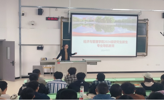 首先是经济与管理学院党委副书记、院长、博士生导师吕雁琴教授,以“追求卓越”为题为全体2024级研究生新生上了一堂生动而深刻地开学第一课。吕雁琴院长首先代表学院全体师生对2024级新生的到来表示欢迎和祝贺。她为新生系统介绍了学院的历史沿革、发展情况和办学特色,吕院长着重指出,新生在入学后一定要尽快确定个人发展目标,确定个人专项定位,制定个人发展规划,并以此为基,深化对专业知识的掌握运,锻炼自己的综合素质,培养个人的兴趣爱好,将对专业的所学所感融入进个人理想与笃行的青春践行中,切实做到学有所思,行之有向。通过吕院长的授课,同学们为学院雄厚的师资力量、扎实的科研平台、有力支撑的人才培养体系所激励鼓舞。无论是研究生导师的谆谆教导,还是到学术训练营的“百家争鸣”,无不激励着新生不断向前,不断探索,进一步增强了新生对学院的认同感与归属感。吕院长在最后勉励新生要做好角色的转变,建议新生锻炼自身抗风险、抗挫折能力,在最好的年华成就最好的自己。
