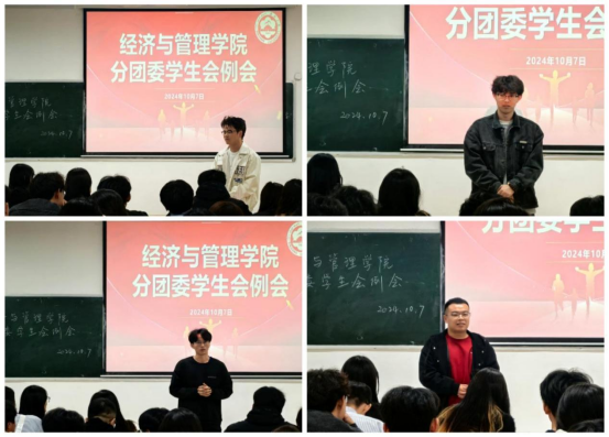 秋风送爽,落叶飘飞。在这丰收的季节中,为进一步加强经济与管理学院分团委学生会的建设,提升学生干部的工作能力和服务水平,我院于2024 年 10 月 7 日 20:00—22:30 举行分团委学生会例会。学院郭旭东老师、刘鑫老师、主席团成员以及各部门负责人出席了此次会议。
