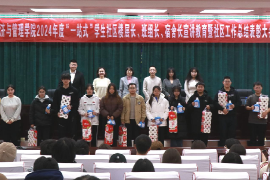 为引导我院学生充分了解学生社区“一站式”改革下综合优化管理、丰富建设内涵、提升服务质量、强化育人属性所取得的显著成就,自觉融入学生社区管理服务工作,促进“一站式”架构下社区与学生群体的有效衔接,保障我院平安校园和宿舍文化建设的持续推进,提高宿舍文化育人、服务育人、思想育人、管理育人和实践育人功能,我院于2024年12月3日20:00在图书馆二楼学术报告厅开展2024年度经济与管理学院“一站式”学生社区楼层长、班组长、宿舍长宣讲教育暨社区工作总结表彰大会。我院党委高度重视学生社区工作,党委副书记、纪委书记苗健老师全程参与,并特邀红湖校区学生社区主任杨明老师参与指导,心理辅导员开丽比努尔·玉山老师进行授课。部分辅导员、全体楼层长、大一、大二班组长以及全体本硕楼栋宿舍长共计300余人参加了本次大会。此外,还邀请了“优秀宿舍”和“问题宿舍”代表成员参与其中,以达到表彰先进,督促后进的目的,最大限度保障会议的影响力和实效性。