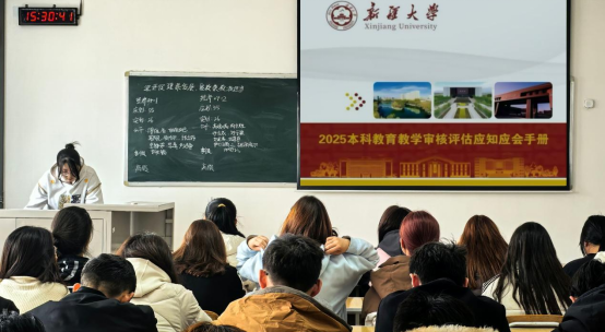 根据教育部印发的《普通高等学校本科教育教学审核评估实施方案(2021-2025年)》,我校将于2025年5月接受教育部教育质量评估中心组织的新一轮本科教育教学审核评估工作。为做好迎评促建工作,助力学生更好地了解本科教育教学审核评估的重大意义、内容与特点,进一步引导学生明确自己的职责,规范自己的言行,以饱满的热情、扎实的学习态度,主动参与到本科教育教学审核评估工作中,为学校评估工作贡献力量。根据新疆大学党委学生工作部要求,我院于2025年3月26日15:30—16:30开展“迎评促建谋发展 爱校荣校我担当”大主题班会。重点学习《2025本科教育教学审核评估应知应会手册》,观看“节水宣传教育”视频和开展“在校生学习体验问卷调查”。我院高度重视本次班会的开展,提前制作班会材料,班主任组织班委预习班会内容,与观摩班级做好对接准备工作,确保班会务实高效开展。