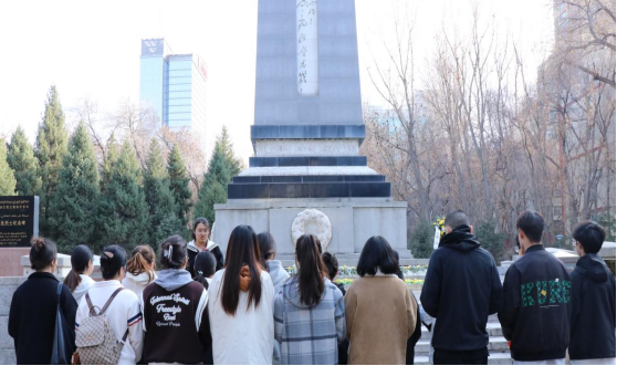 四月的乌鲁木齐,春寒未褪,但人民公园内已悄然萌发新绿。清明时节,松柏凝翠,万物生辉。2025年4月2日下午17时30分,新疆大学经济与管理学院志愿者分队的20余名青年学生,身着素色服装,手捧白菊,肃立于新疆各族人民烈士纪念碑前。这座巍峨的纪念碑镌刻着天山南北各族人民为祖国统一、边疆安宁献出生命的英雄之名,此刻在暮色中更显庄严肃穆。